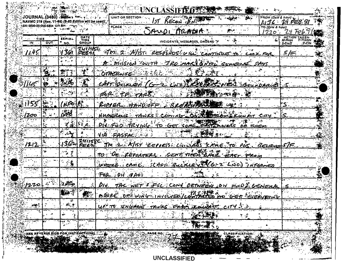 Document 8 f:/Week-38/BX600020/COMMAND CHRONOLOGY 1ST RECONNAISSANCE BATTALION JAN - MAR 1991/1st recon bn journal 24 feb 91:01029709503812