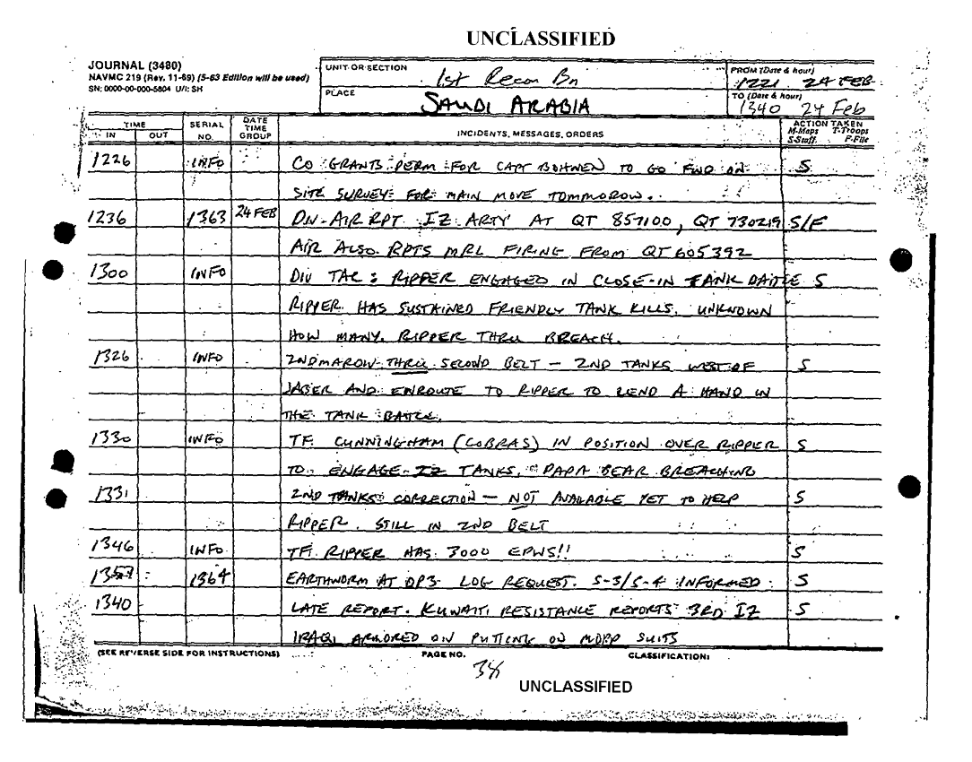Document 8 f:/Week-38/BX600020/COMMAND CHRONOLOGY 1ST RECONNAISSANCE BATTALION JAN - MAR 1991/1st recon bn journal 24 feb 91:01029709503812