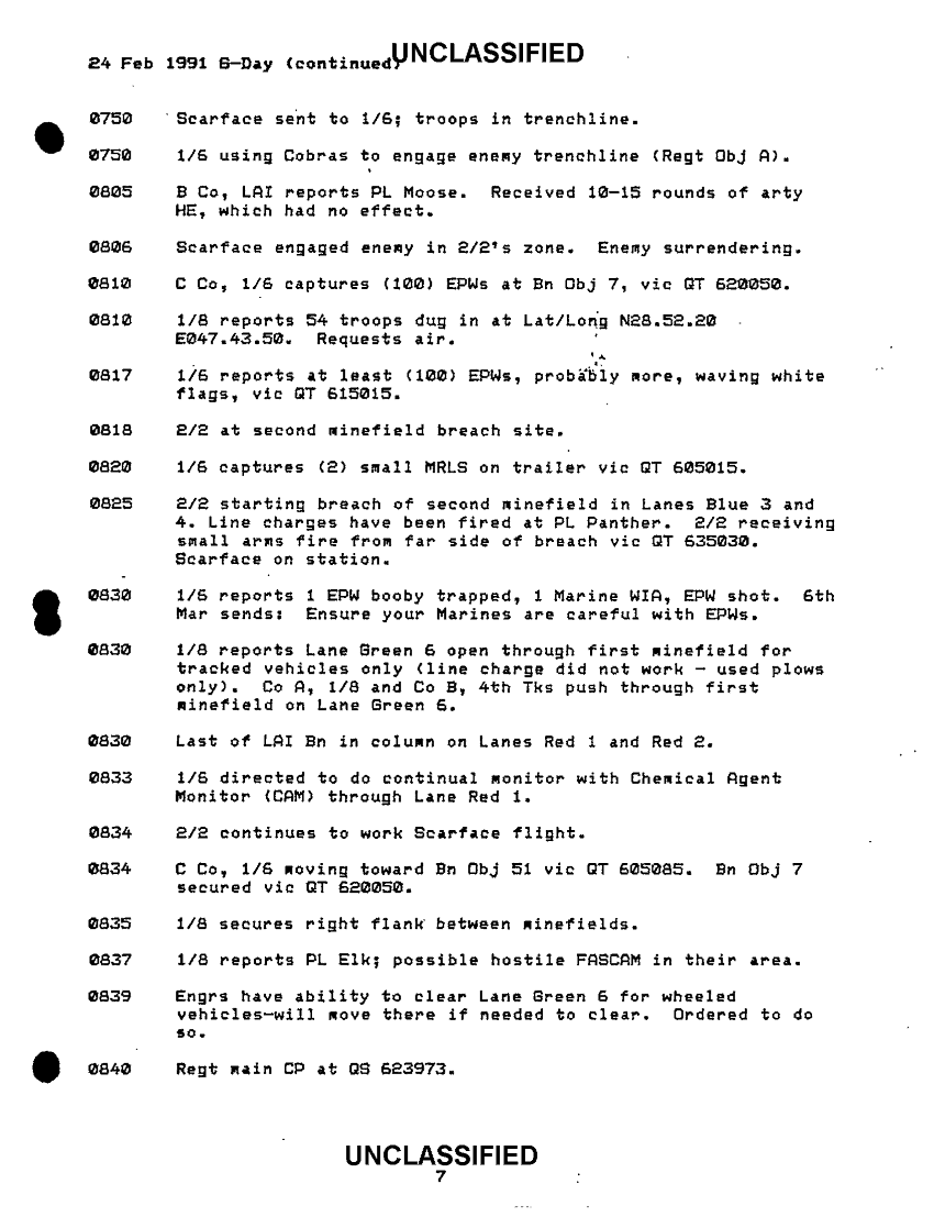 Document 47 f:/Week-51/BX600094/BATTLE ASSESSMENT DOCUMENTATION TABS B-M/6th marine regiment sequential listing of significant events:03249710491612