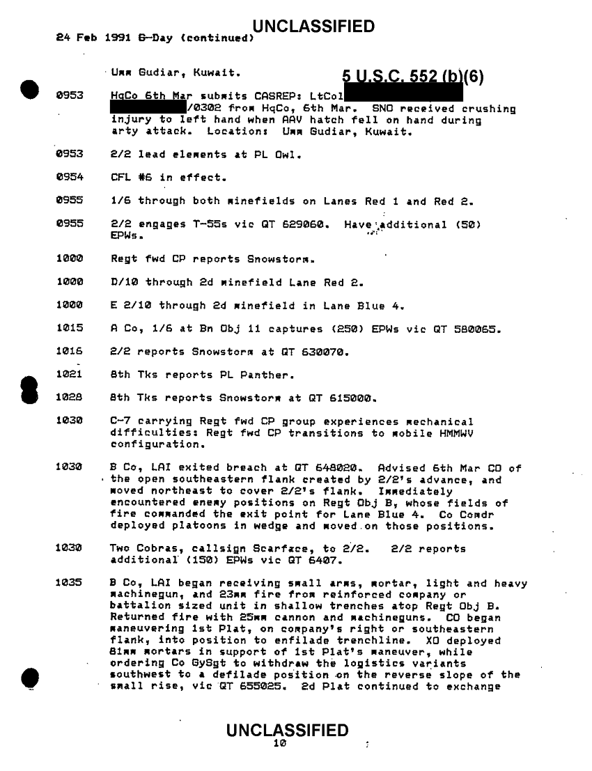 Document 47 f:/Week-51/BX600094/BATTLE ASSESSMENT DOCUMENTATION TABS B-M/6th marine regiment sequential listing of significant events:03249710491612