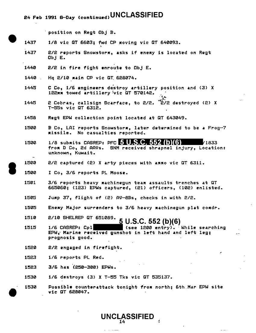 Document 47 f:/Week-51/BX600094/BATTLE ASSESSMENT DOCUMENTATION TABS B-M/6th marine regiment sequential listing of significant events:03249710491612