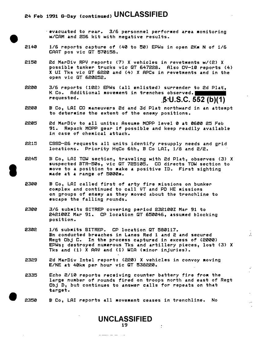 Document 47 f:/Week-51/BX600094/BATTLE ASSESSMENT DOCUMENTATION TABS B-M/6th marine regiment sequential listing of significant events:03249710491612