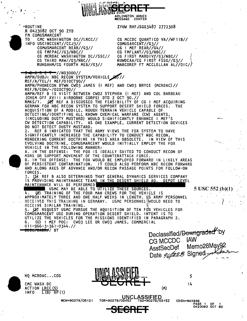 Document 2 f:/Week-62/BX600128/MARCENT-VARIOUS MARINE CORPS MESSAGES 90-91 WDID SWA 043 MCCDC 1 OF 6/nbc recon system vehicle 4 oct 90:03249710492427