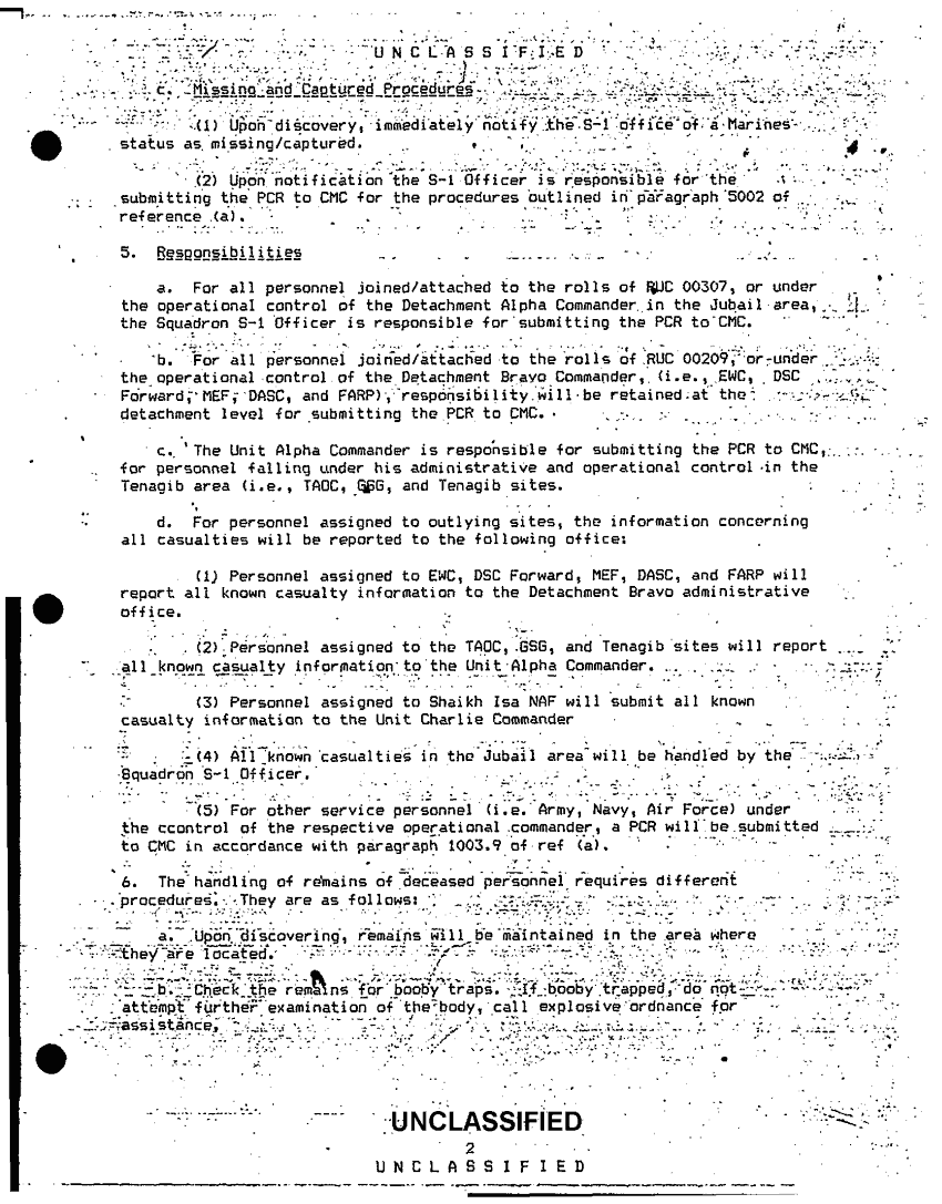 Document 6 f:/Week-51/BX600101/MWCS 38 FRAGO 1 91 16 FEB 91/annex e casualty rpt handling remains to frago 1 91:0324971049124