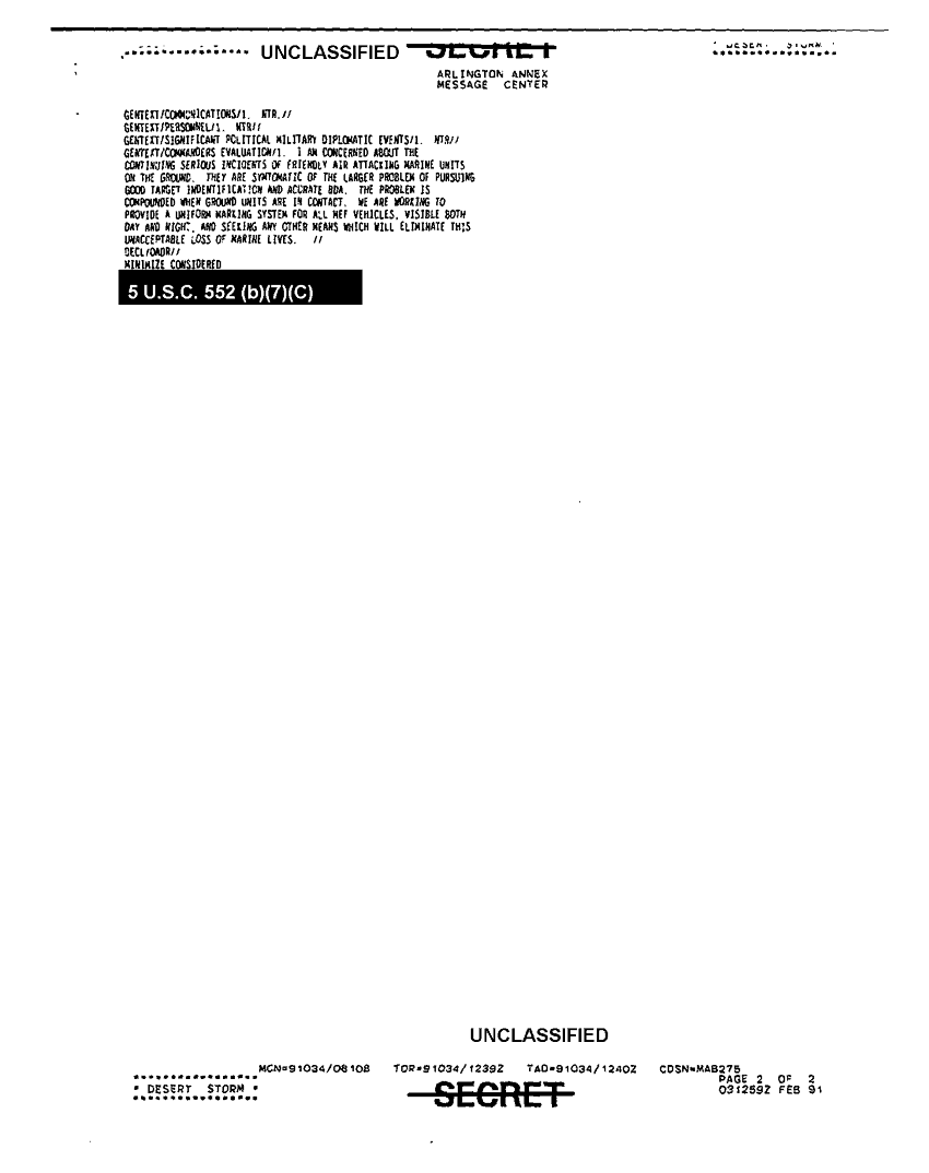 Folder Title = HQMC - DESERT STORM MESSAGE FILE MAR 91 CNA 7625