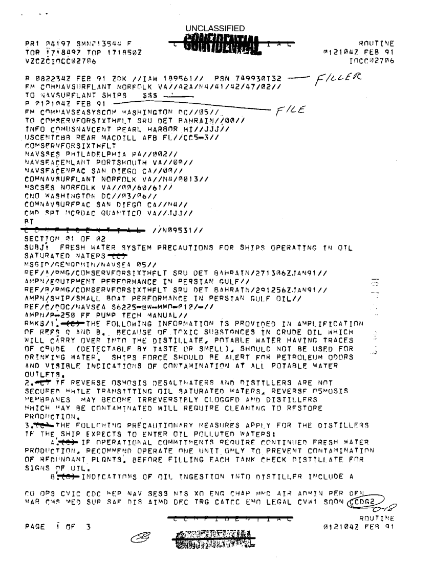 Document 5 f:/Week-33/BX300011/MESSAGE FILE FOR 8 FEB 1991 CNA 2707/fresh water precau for ships operating in oil sa:0906961534495