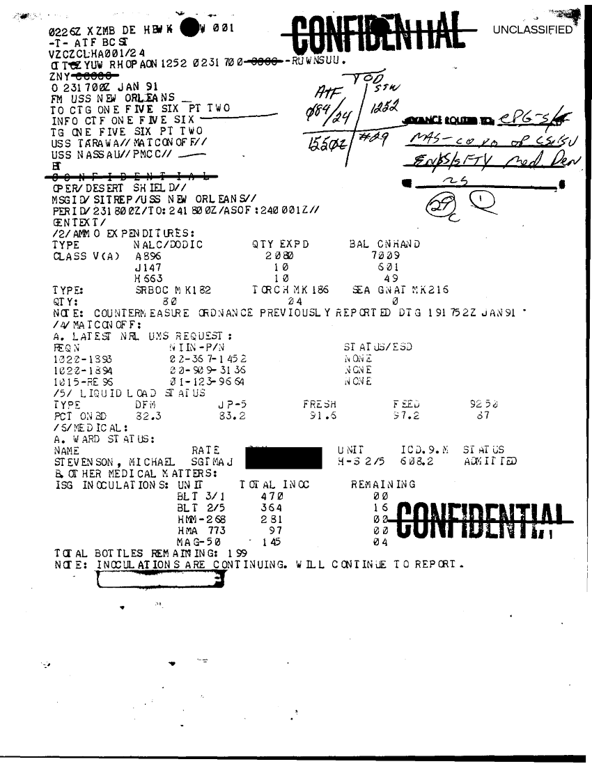 Document 2 f:/Week-33/BX300004/SHIPS SITUATION REPORT USS NEW ORLEANS CNA 982/sitrep uss new orleans 23 jan 91:0906961534547
