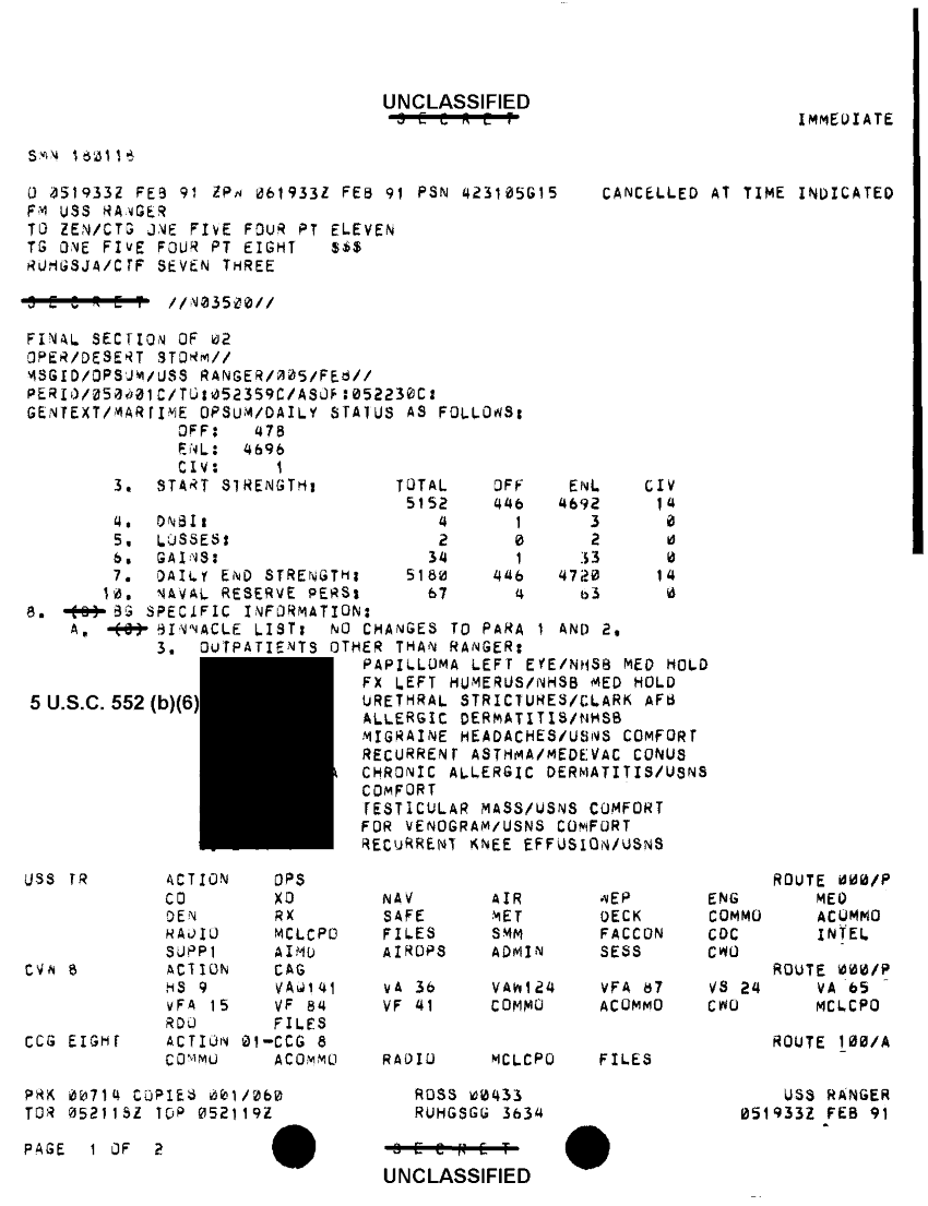 Document 5 f:/Week-35/BX300038/FOLDER 2 MESSAGE FILES FOR 5 FEB 1991 CNA 2758 1OF2/opsum uss ranger 5 feb 91:1004961337556