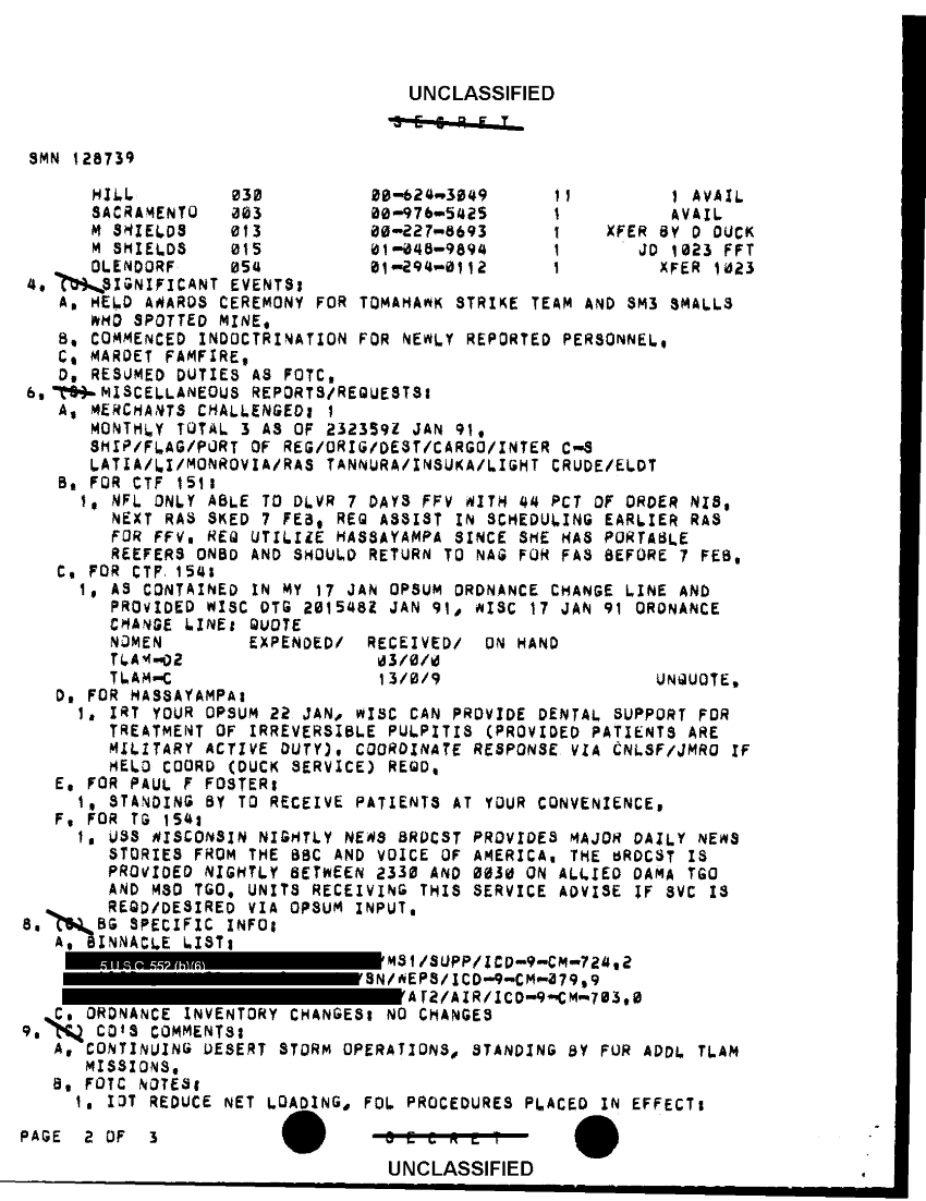 Document 4 f:/Week-36/BX300047/FOLDER 4 MESSAGE FILES FOR 23 JAN 1991 CNA 2757 1OF2/opsum 023 uss wisconsin 23 jan 91:0925961702185