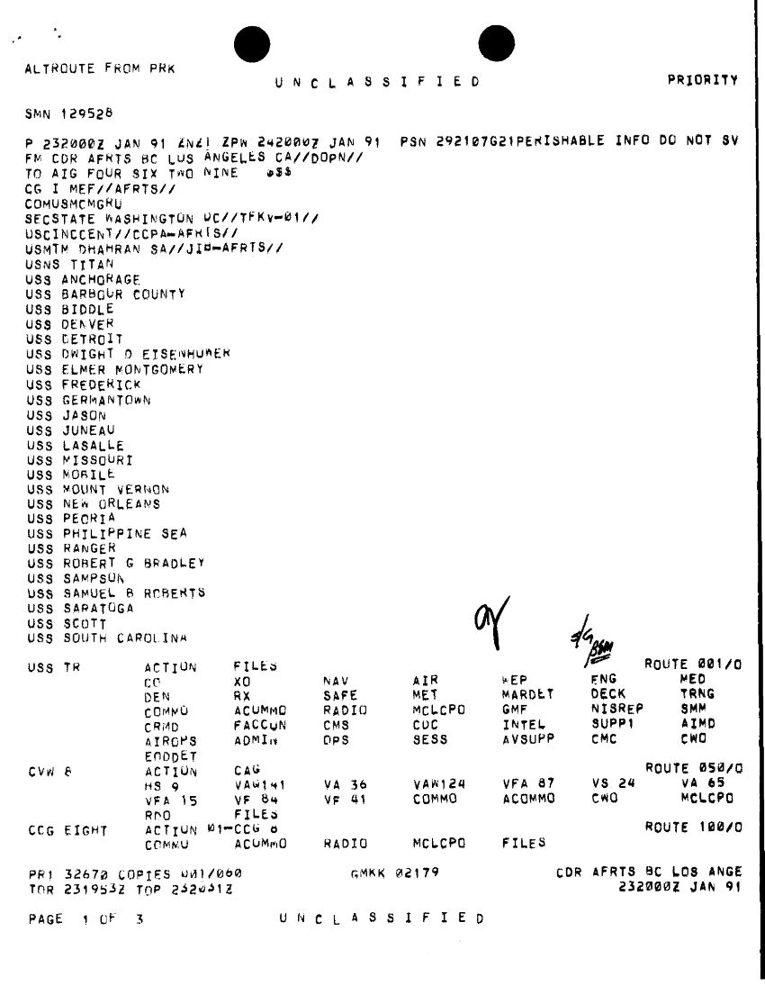 Folder Title = FOLDER 2 MESSAGE FILES FOR 23 JAN 1991 CNA 2757 1OF2