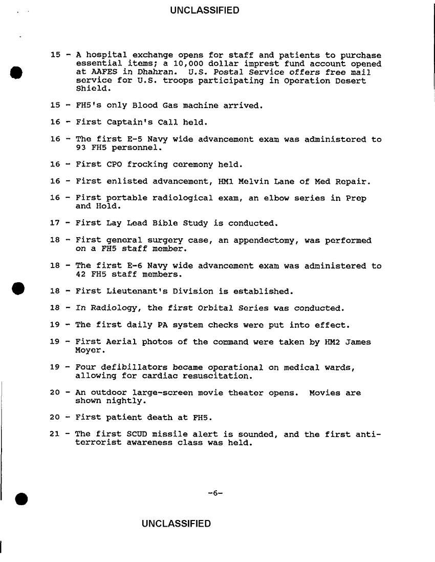 Document 19 f:/Week-36/BX300052/FLEET HOSPITAL WORKING PAPERS VARIOUS SOURCES CNA 2837/flet hospital five chronology 12 mar 91:1018961451358