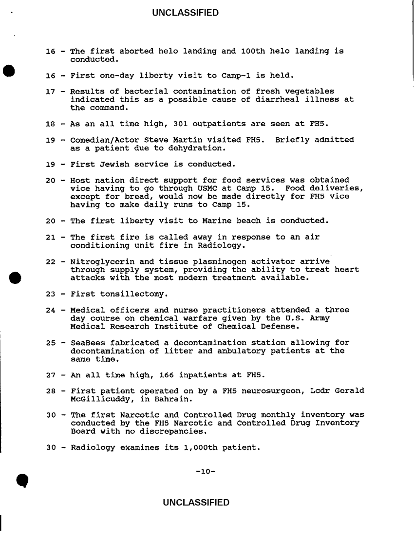 Document 19 f:/Week-36/BX300052/FLEET HOSPITAL WORKING PAPERS VARIOUS SOURCES CNA 2837/flet hospital five chronology 12 mar 91:1018961451358