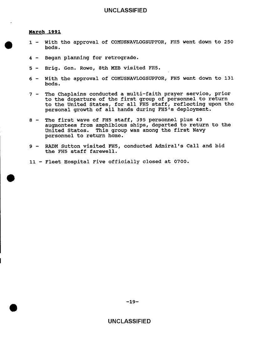Document 19 f:/Week-36/BX300052/FLEET HOSPITAL WORKING PAPERS VARIOUS SOURCES CNA 2837/flet hospital five chronology 12 mar 91:1018961451358