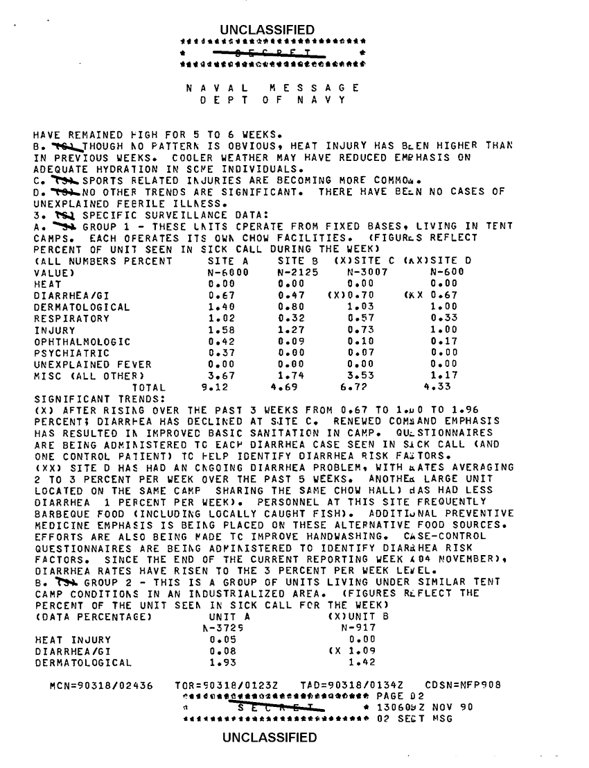 Document 5 f:/Week-41/BX300104/COMUSNAVLOGSUPFOR NAVY MEDICAL MESSAGE FILES 1990-1991 CNA 2910/disease surveillance for usmc forces wk of 28 :11049611394226