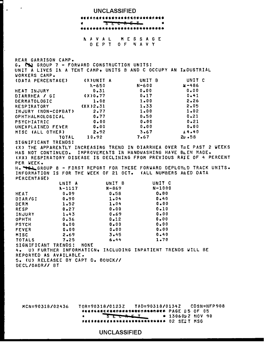 Document 5 f:/Week-41/BX300104/COMUSNAVLOGSUPFOR NAVY MEDICAL MESSAGE FILES 1990-1991 CNA 2910/disease surveillance for usmc forces wk of 28 :11049611394226
