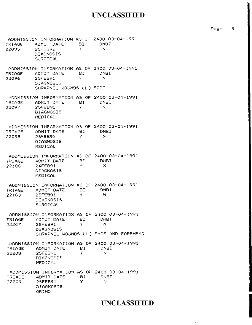 Document 34 f:/Week-42/BX300118/FOLDER 2 - PATIENTS TREATED - AL KHANJAR TRAUMA CENTER MAR 91/admission information as of 2400 03 04 1991:1112:1112961728162