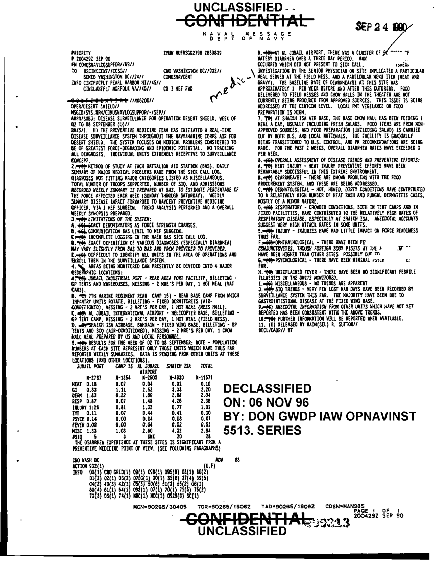 Document 1 f:/Week-41/BX300104/COMUSNAVLOGSUPFOR NAVY MEDICAL MESSAGE FILES 1990-1991 CNA 2910/disease surveillance for operation desert shield:1122961646579