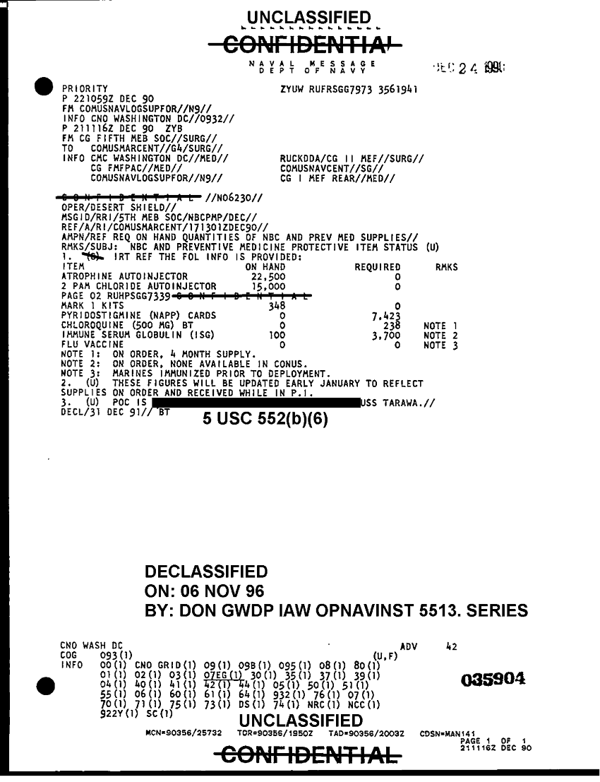 Document 1 f:/Week-41/BX300104/COMUSNAVLOGSUPFOR NAVY MEDICAL MESSAGE FILES 1990-1991 CNA 2910/nbc and preventative medicine protective item st:11229616465812