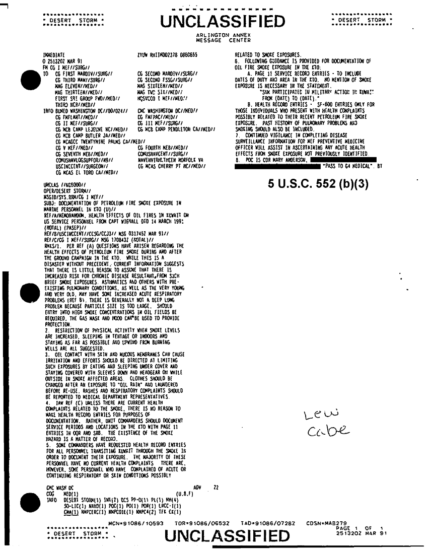 Document 1 f:/Week-41/BX300082/FOLDER 5 VARIOUS SOURCES MESSAGE FILES JAN - JUN 91 CNA 39018 2 OF 3/documentation of petroleum fire smoke exposure :1206961536544