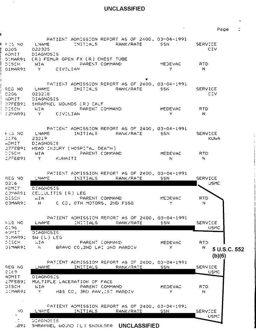 Folder Title = FOLDER 2 - PATIENTS TREATED - AL KHANJAR TRAUMA CENTER MAR 91