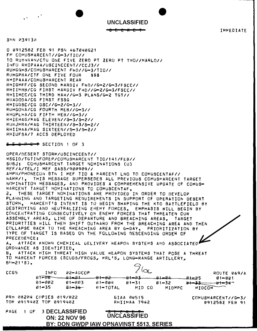 Document 9 f:/Week-40/BX300068/FOLDER 14 MESSAGE FILES 5 13 FEB 91 CNA 1 OF 2/comusmarcent target nominations 9 feb 91:1217960957557