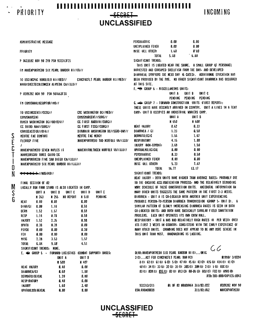Document 4 f:/Week-41/BX300104/COMUSNAVLOGSUPFOR NAVY MEDICAL MESSAGE FILES 1990-1991 CNA 2910/disease surveillance wk 21 to 27 oct 90:0102970948543
