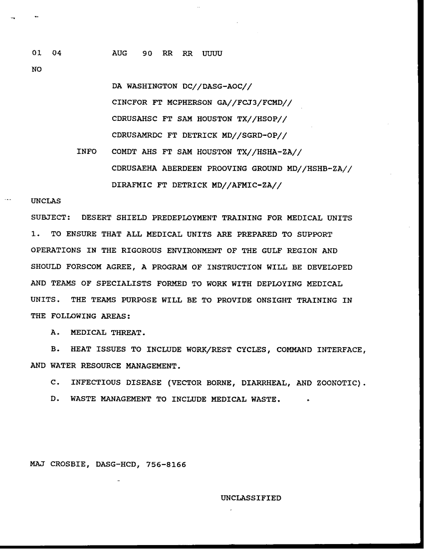 Folder Title = DESERT SHIELD PREDEPLOYMENT TRAINING FOR MEDICAL UNITS-1