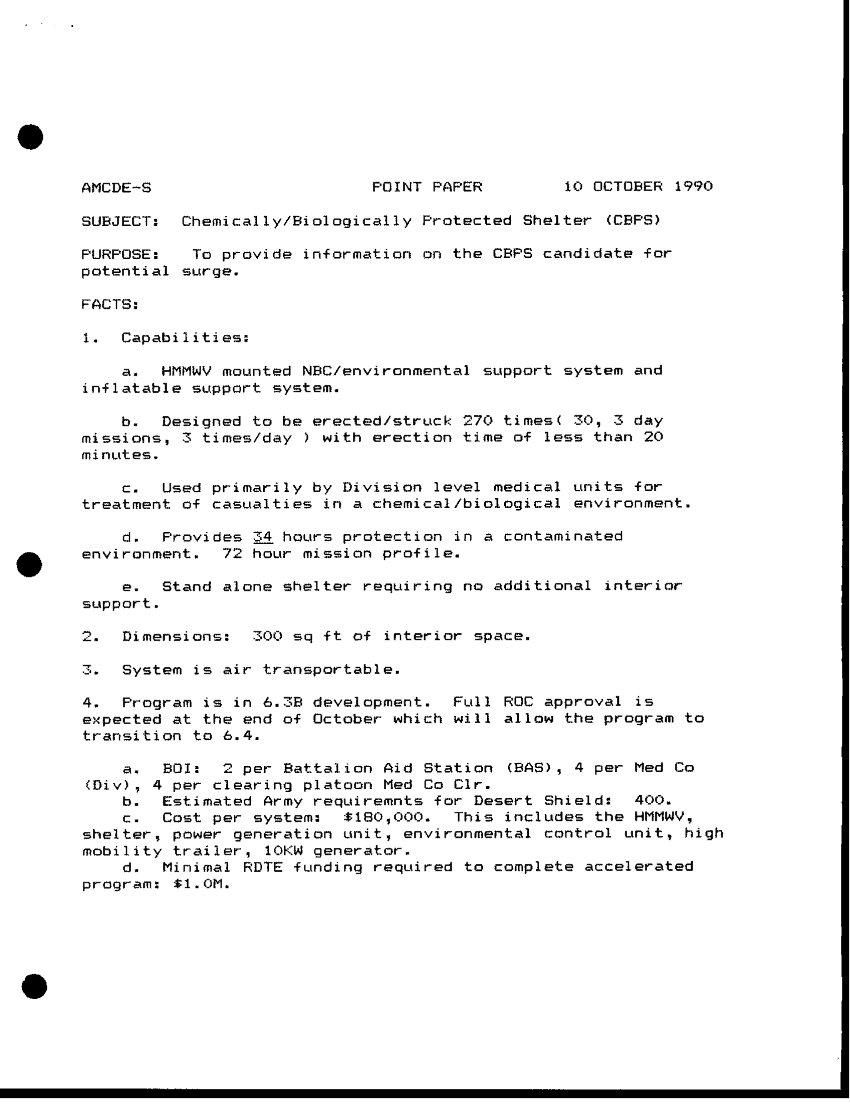 Subject = POTENTIAL SURGE FOR CHEMICAL BIOLOGICAL PROTECTI