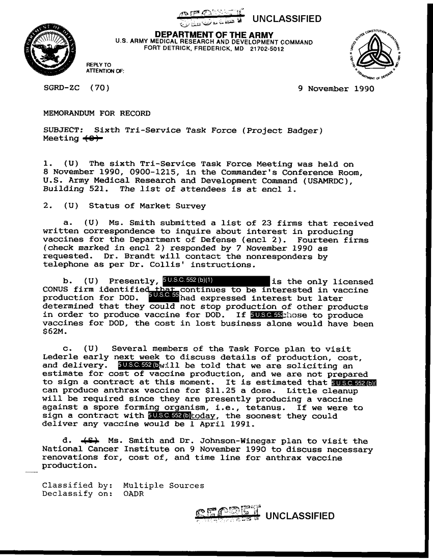 Document 4 f:/Week-36/BX003202/SIXTH TRI-SERVICE TASK FORCE PROJECT BADGER/sixth tri service task force meeting 9 nov 90:10189613544114