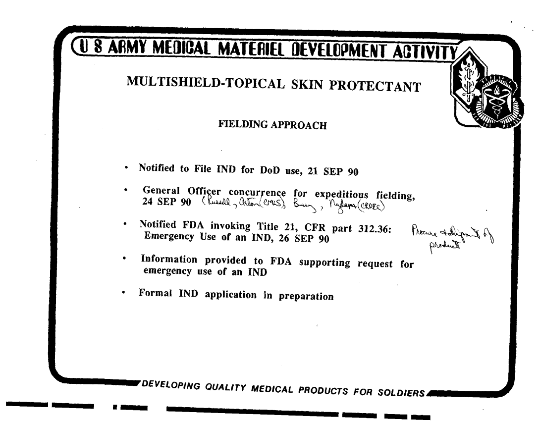 Subject = MULTISHIELD TOPICAL SKIN PROTECTANT 27 SEP 90