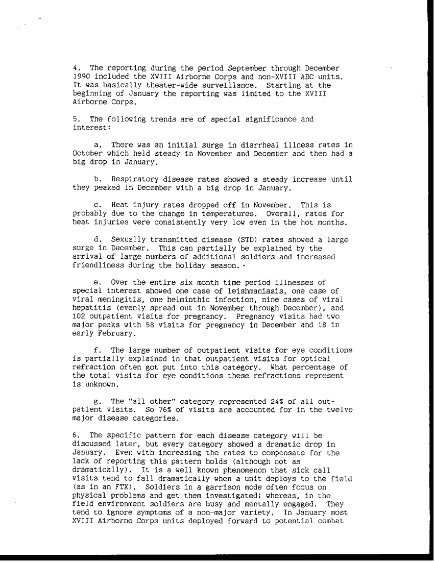 Document 4 f:/Week-36/BX003204/OPERATION DESERT SHIELD DESERT STORM MEDICAL DATA/summary of outpatient morbidity surveillance:11049609101617