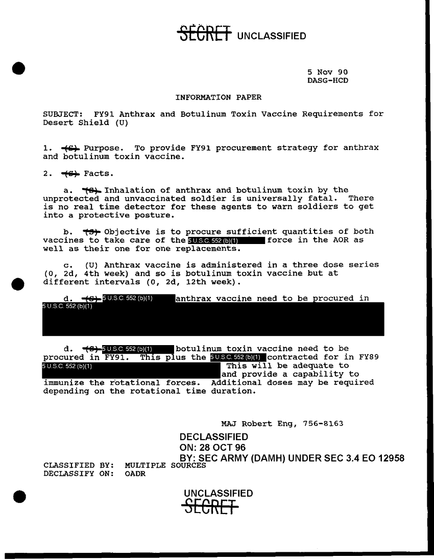 Subject = FY91 ANTHRAX BOTULINUM TOXIN VACCINE REQUIREMENT