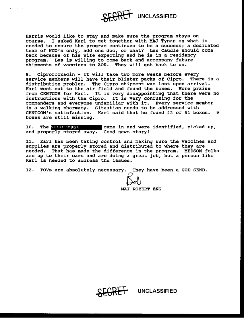 Document 2 f:/Week-36/BX003203/LETTER TO COL DIEVENDORF/info on vaccination program 15 jan 91:1104960910098