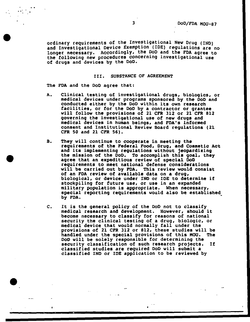 Document 5 f:/Week-36/BX003203/MOU BETWEEN THE FOOD AND DRUG ADMINISTRATION AND DOD/moa on investigational use of drugs antibiotics:11089615090121