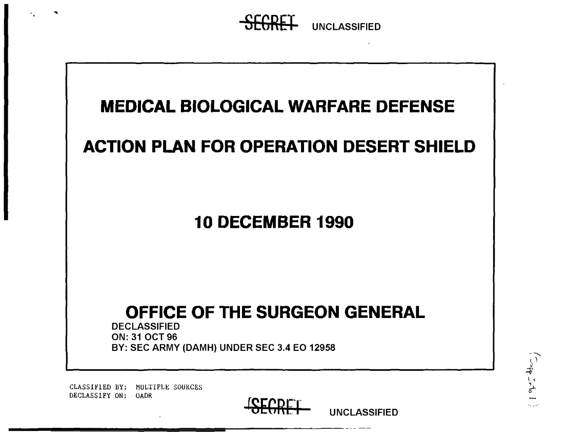 Document 11 f:/Week-36/BX003202/UPDATE ON BIOLOGICAL WARFARE VACCINATION AND PRODUCTION ISSUES/medical biological warfare defense 10 dec 90:11089615091631