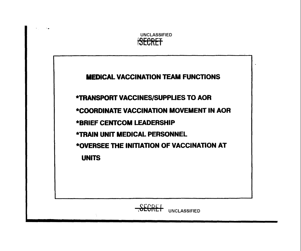 Folder Title = UPDATE ON BIOLOGICAL WARFARE VACCINATION AND PRODUCTION ISSUES