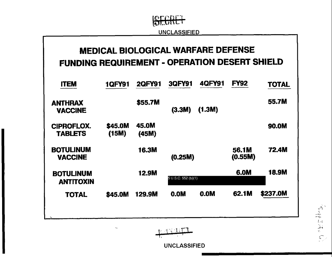 Document 11 f:/Week-36/BX003202/UPDATE ON BIOLOGICAL WARFARE VACCINATION AND PRODUCTION ISSUES/medical biological warfare defense 10 dec 90:11089615091631
