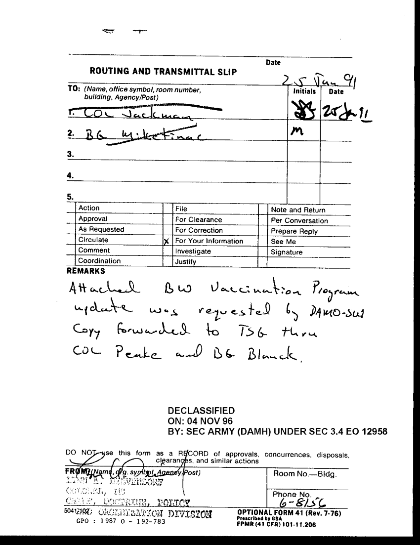 Document 2 f:/Week-36/BX003203/STATUS REPORT ON BIOLOGICAL WARFARE VACCINATION/bw vaccination program update:11089615092839