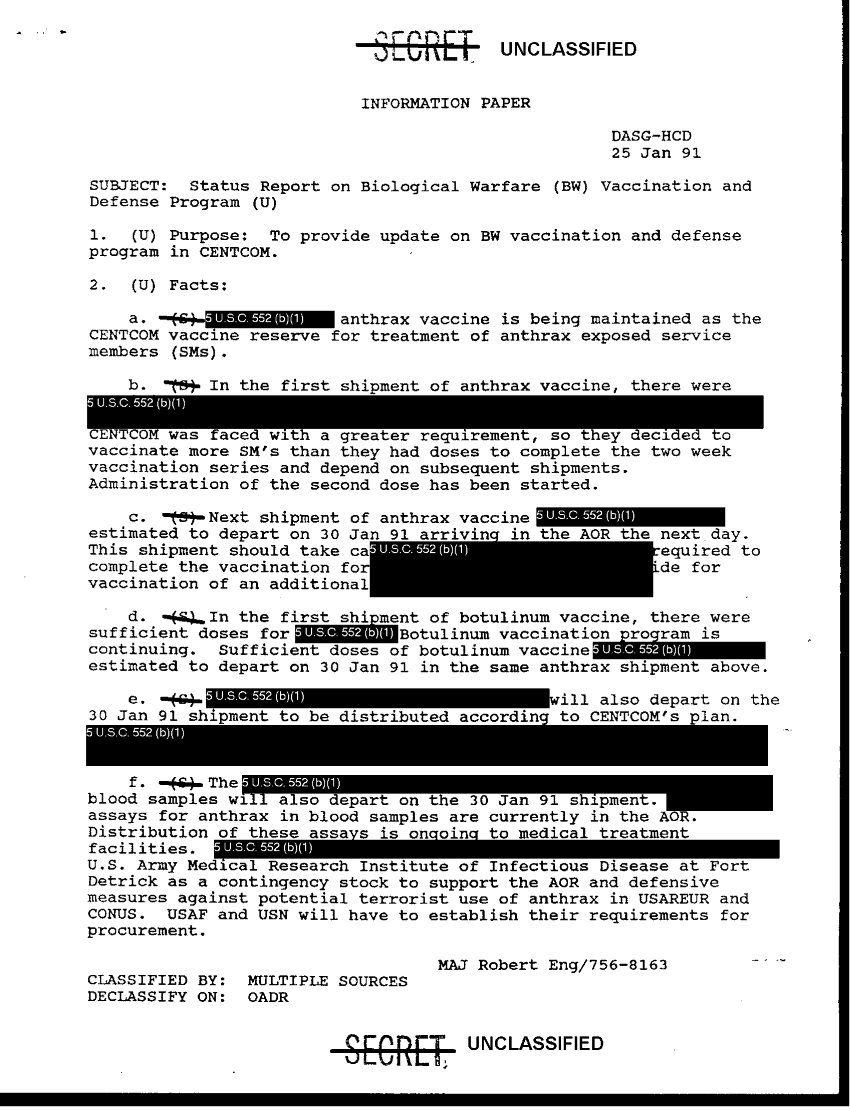 Document 2 f:/Week-36/BX003203/STATUS REPORT ON BIOLOGICAL WARFARE VACCINATION/bw vaccination program update:11089615092839