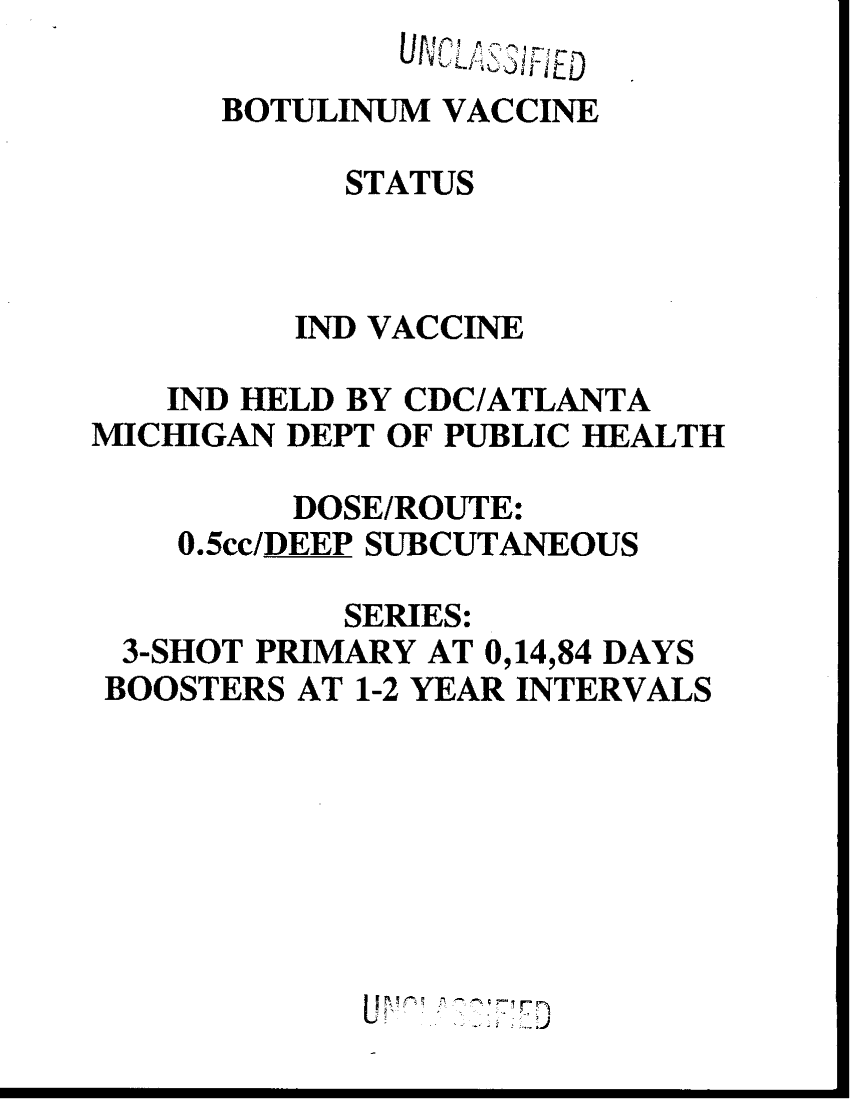 Document 5 f:/Week-36/BX003203/BOTULINUM VACCINE STATUS/botulinum vaccine status:11229616342618