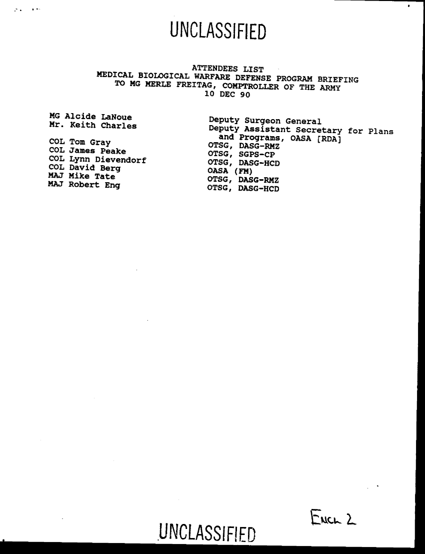 Document 13 f:/Week-36/BX003203/BRIEFING TO MG MERLE FREITAG COMPTROLLER OF THE ARMY/briefing on biological warfare defense program d:1125961012412
