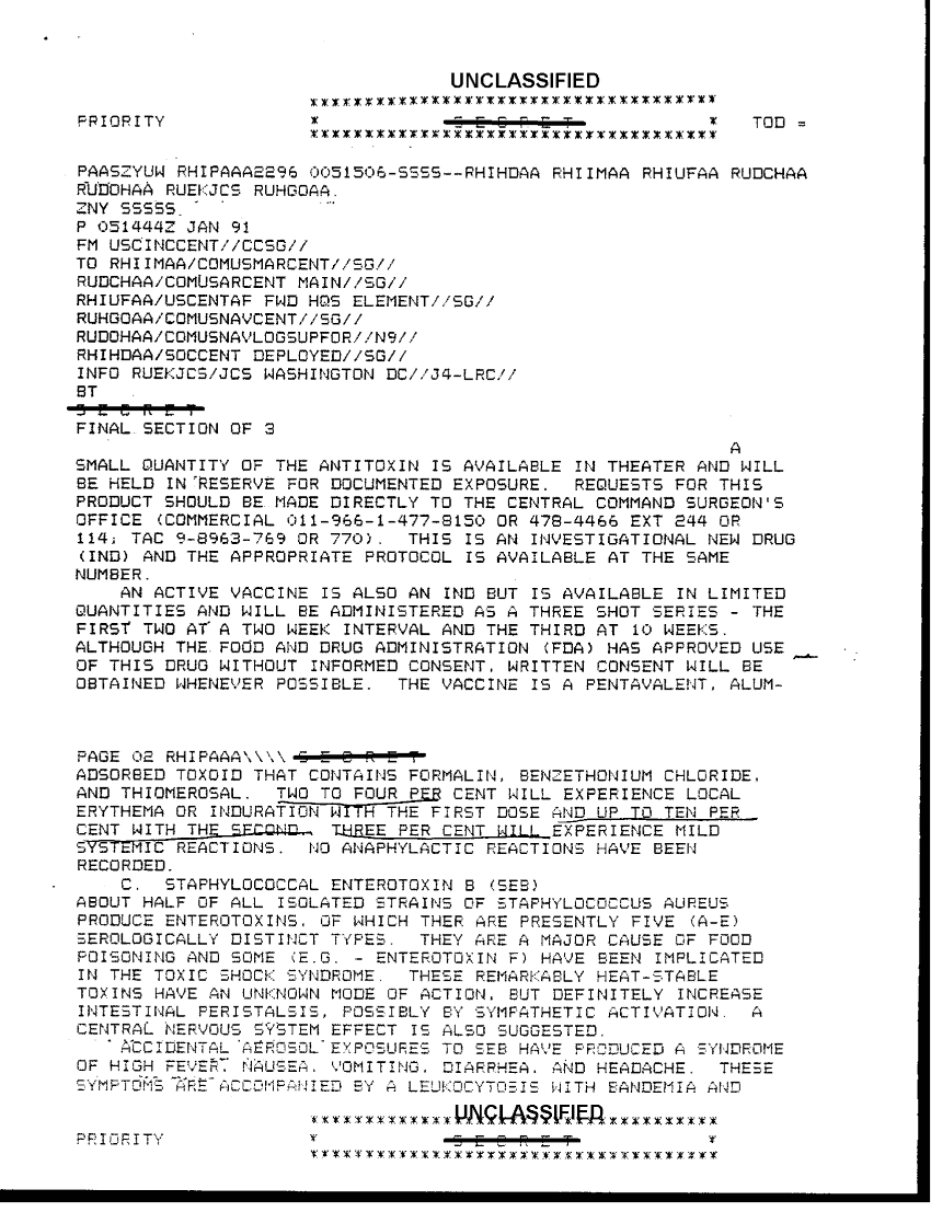 Subject = BIOLOGICAL WARFARE DEFENSE MEDICAL GUIDELINES