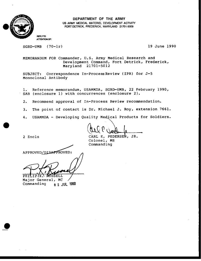 Document 9 f:/Week-36/BX003203/SUMMARY OF CORRESPONDENCE IN-PROCESS REVIEW/summary ipr j 5 human monoclonal antibody:11259610133425
