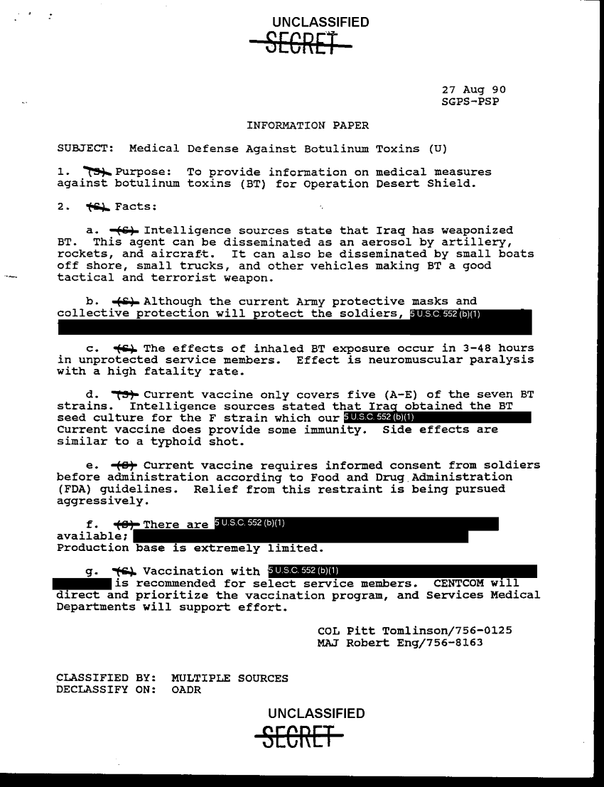 Subject = MEDICAL DEFENSE AGAINST BIOLOGICAL WARFARE THREA