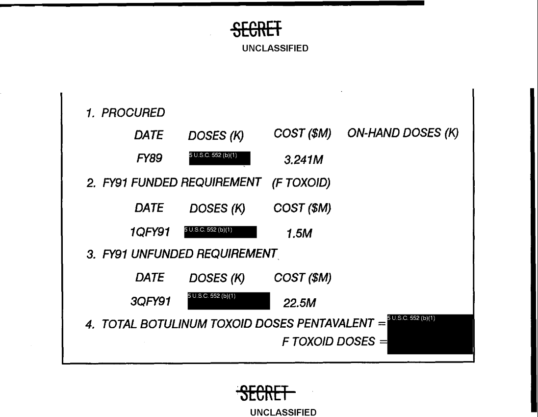 Document 18 f:/Week-36/BX003203/STATUS ON ANTHRAX VACCINE AND BOTULINUM TOXOID/status on anthrax vaccine botulinum toxoid procu:12069615355113