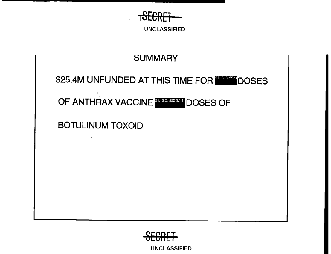 Document 18 f:/Week-36/BX003203/STATUS ON ANTHRAX VACCINE AND BOTULINUM TOXOID/status on anthrax vaccine botulinum toxoid procu:12069615355113