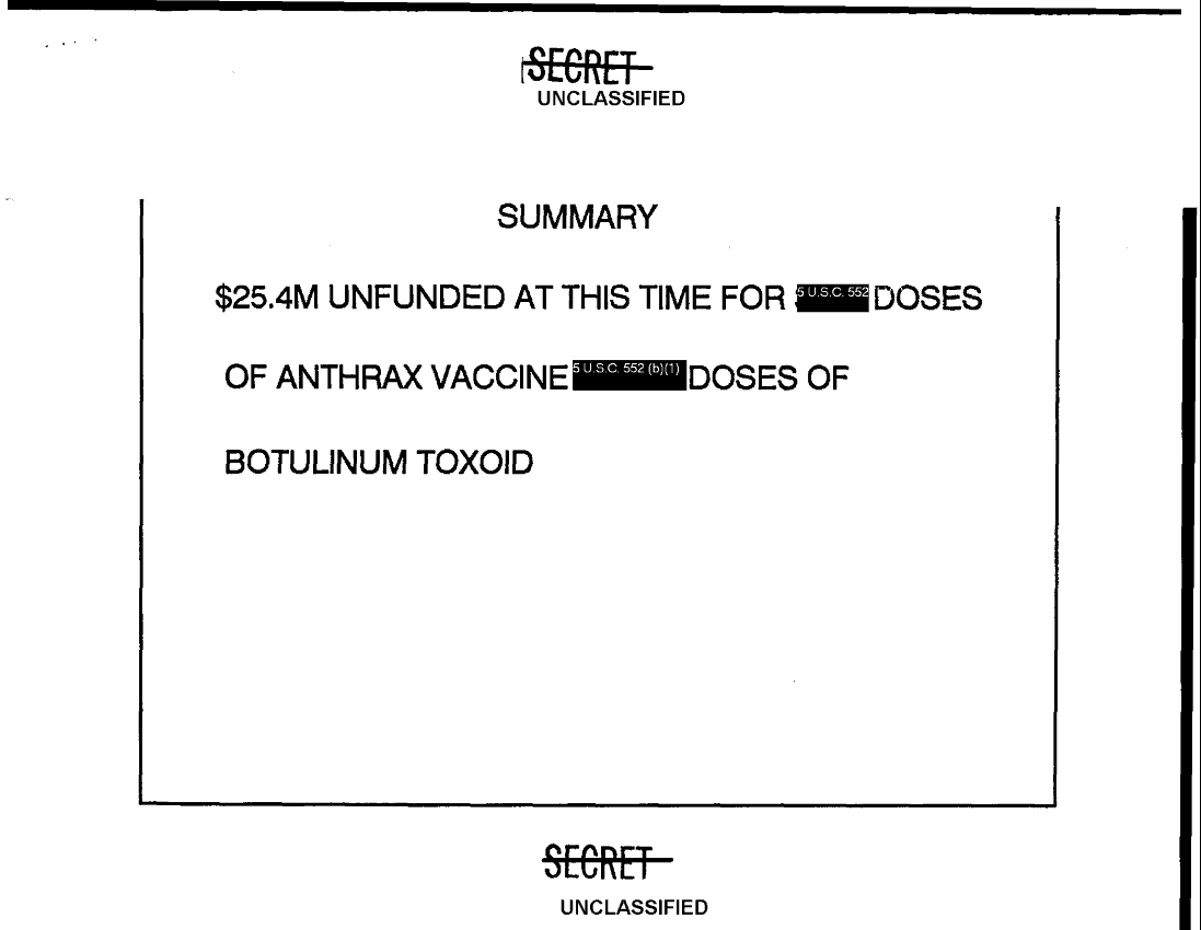 Document 18 f:/Week-36/BX003203/STATUS ON ANTHRAX VACCINE AND BOTULINUM TOXOID/status on anthrax vaccine botulinum toxoid procu:12069615355113