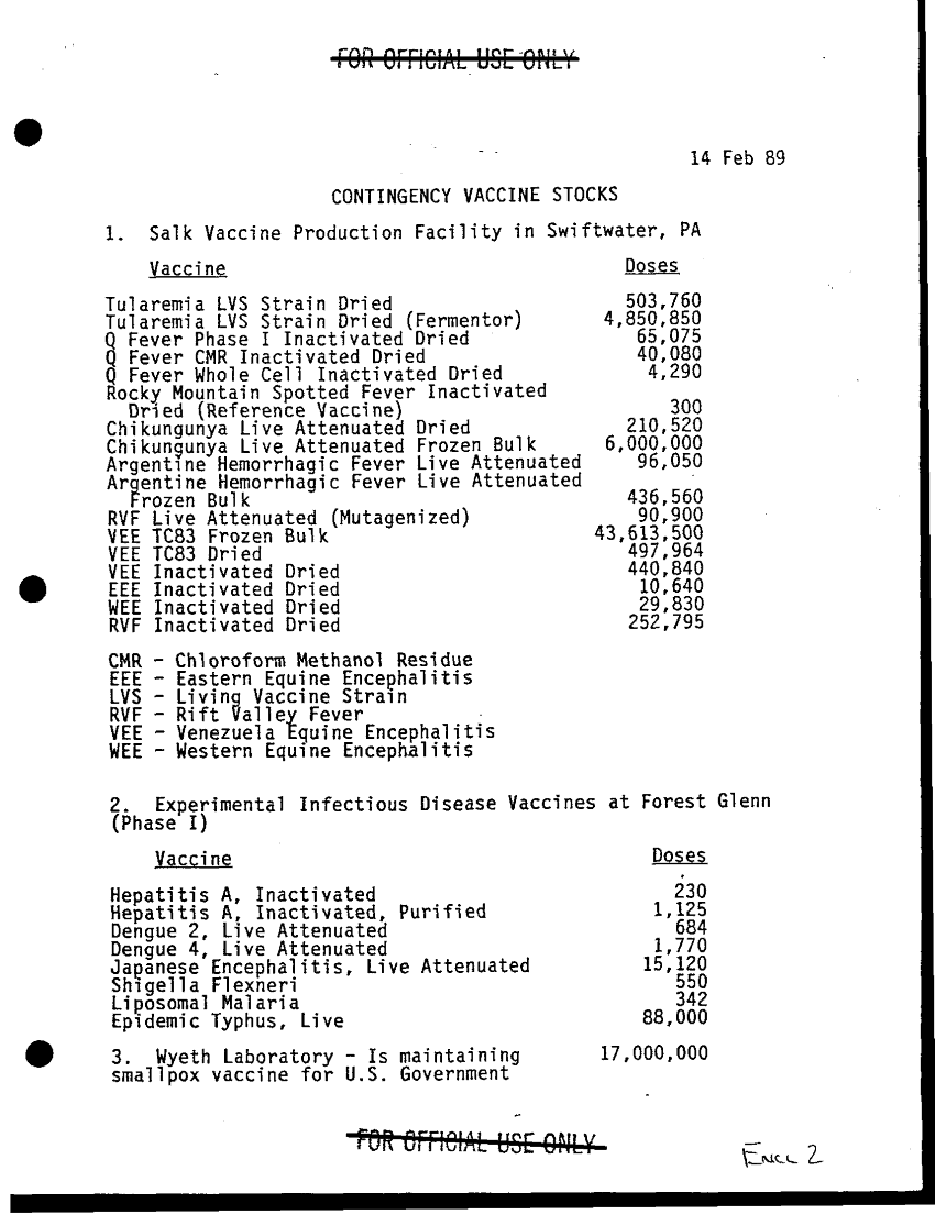 Subject = CONTINGENCY VACCINE STOCKS 14 FEB 89