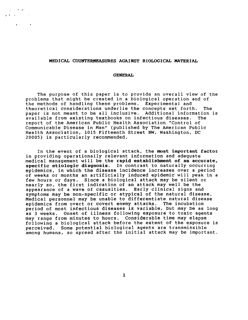 Subject = MEDICAL COUNTERMEASURES AGAINST BIOLOGICAL MATER