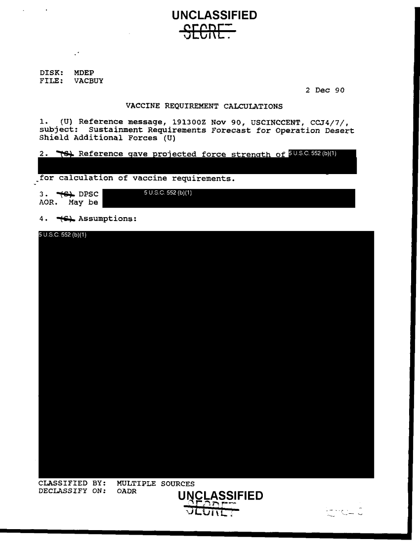 Subject = JUSTIFICATION CALCULATION FUNDING FOR ANTHRAX AN